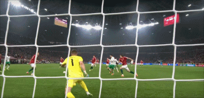 布达佩斯、普斯卡什球场,客队爱尔兰队想要晋级附加赛还需要再进一球。